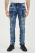 Le jean moto à jambe étroite et taille normale est équipé de plusieurs poches, dont deux zippées verticales.