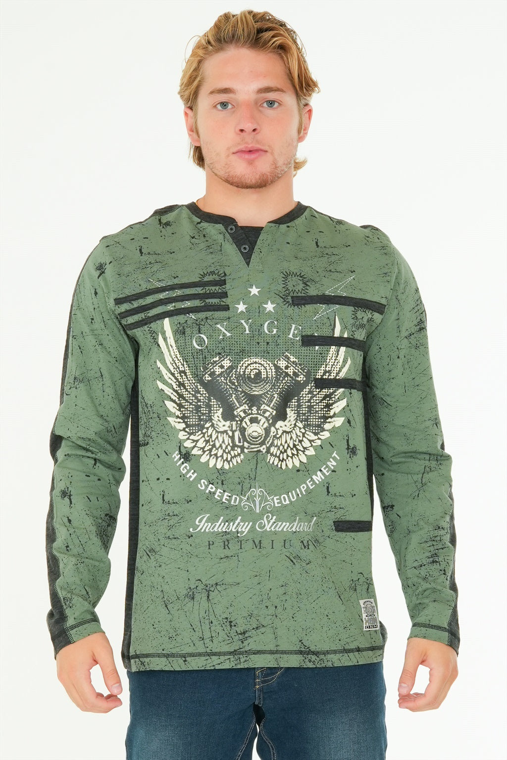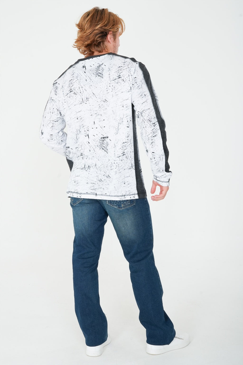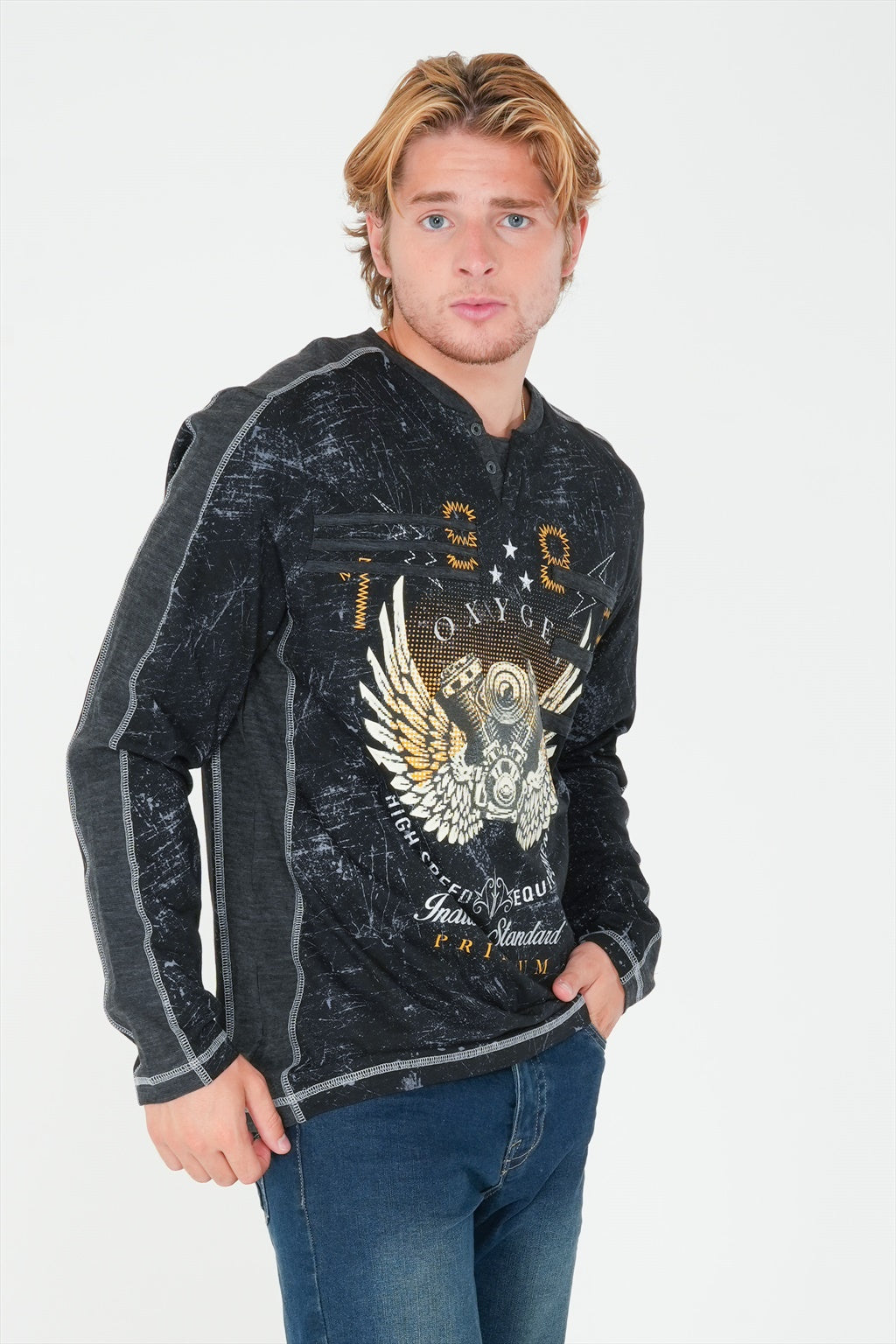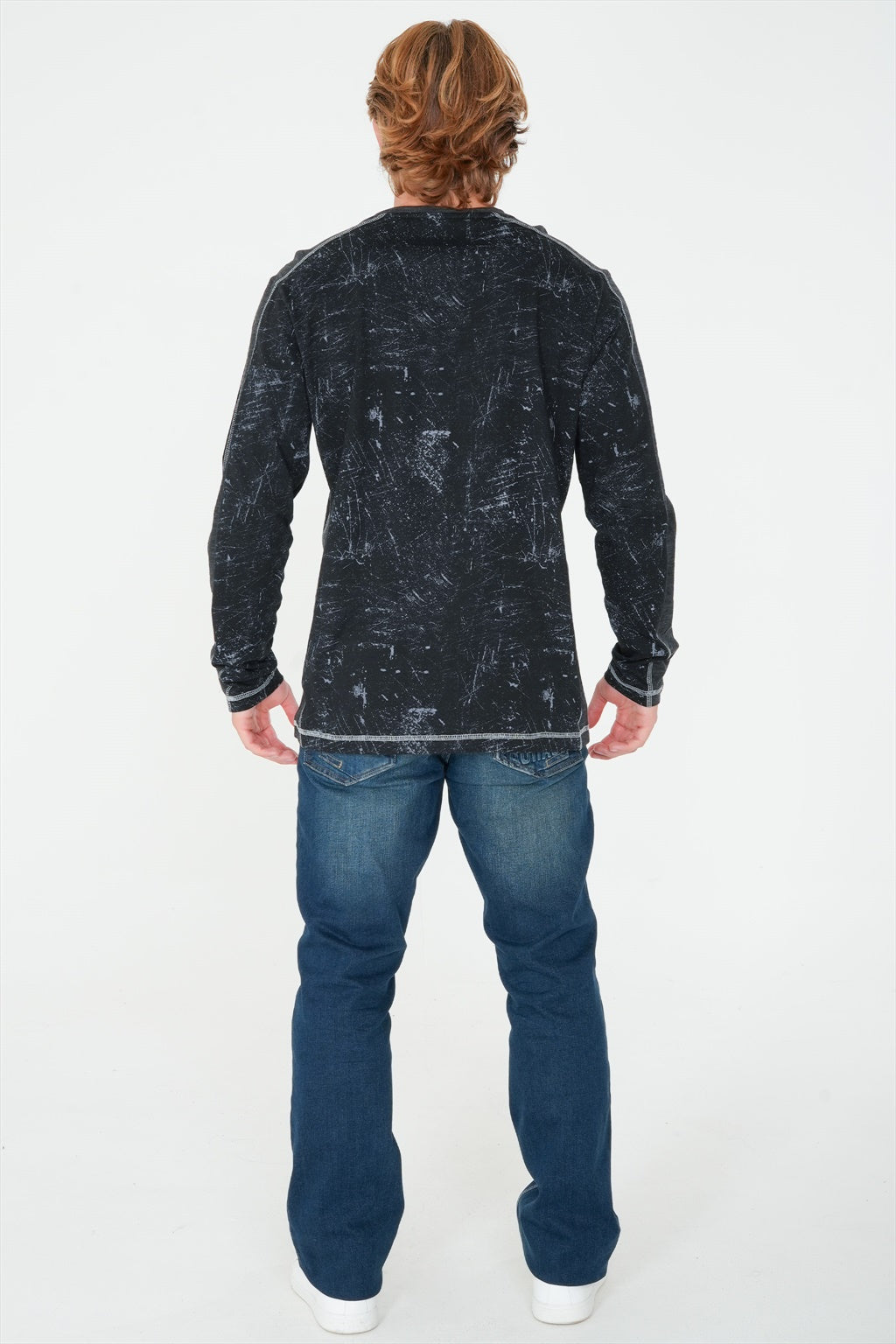 Véritable élément essentiel de votre garde-robe, ce henley à manches longues et col rond avec un imprimé all-over sera un élément essentiel de votre look décontracté.