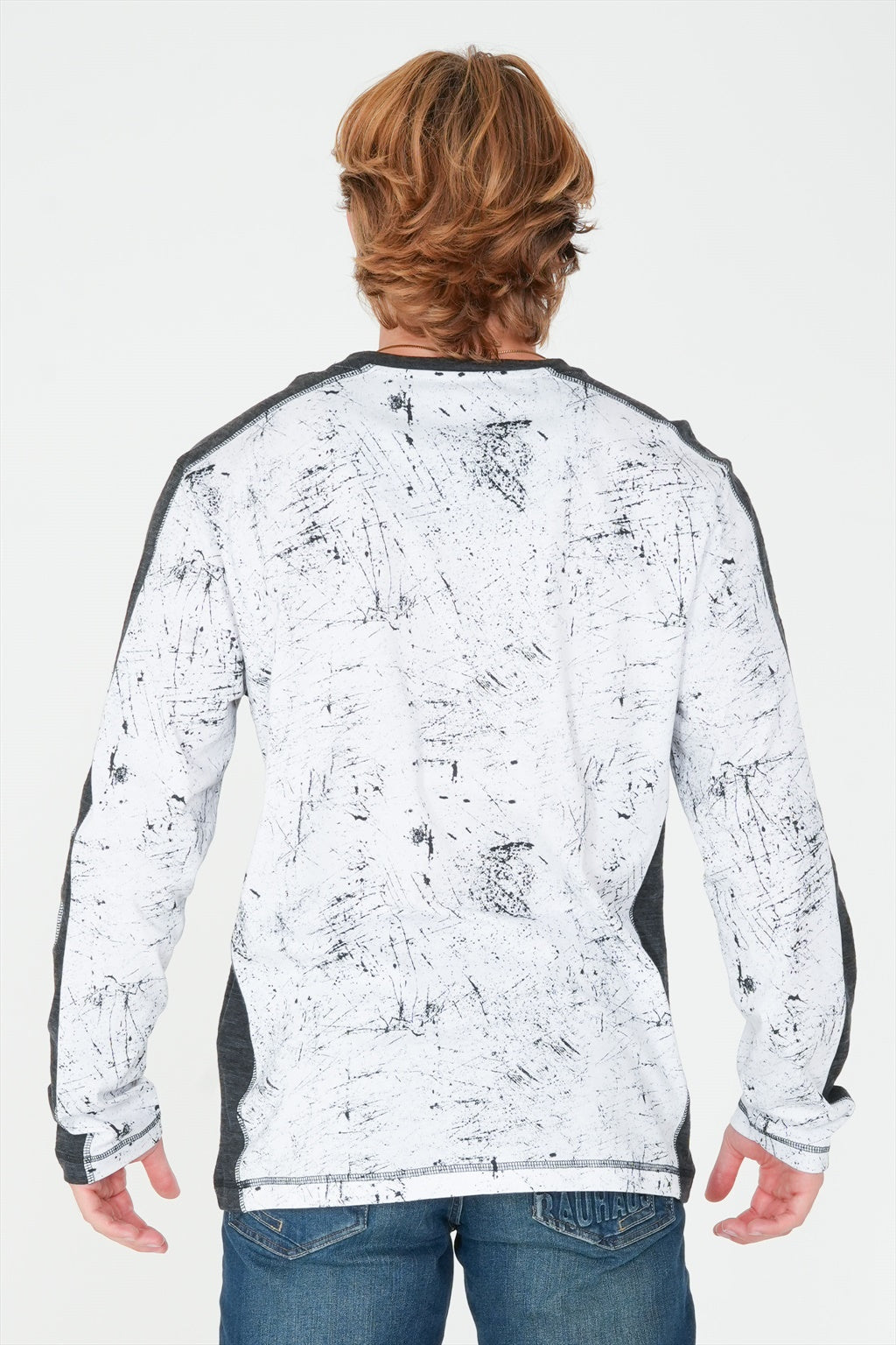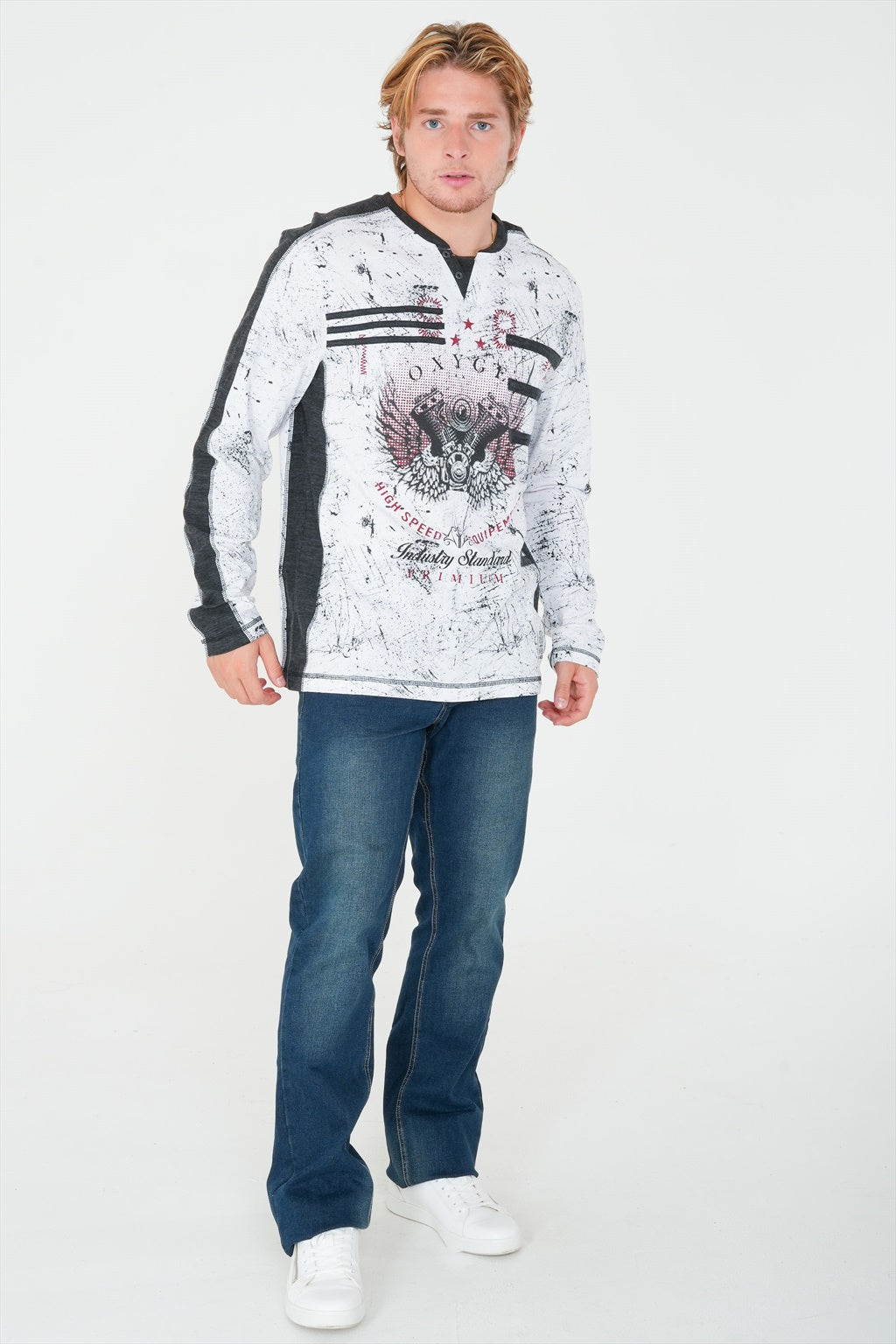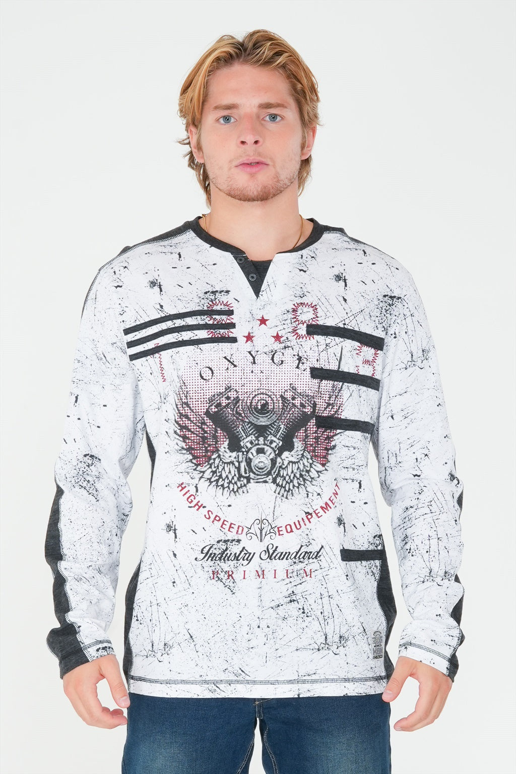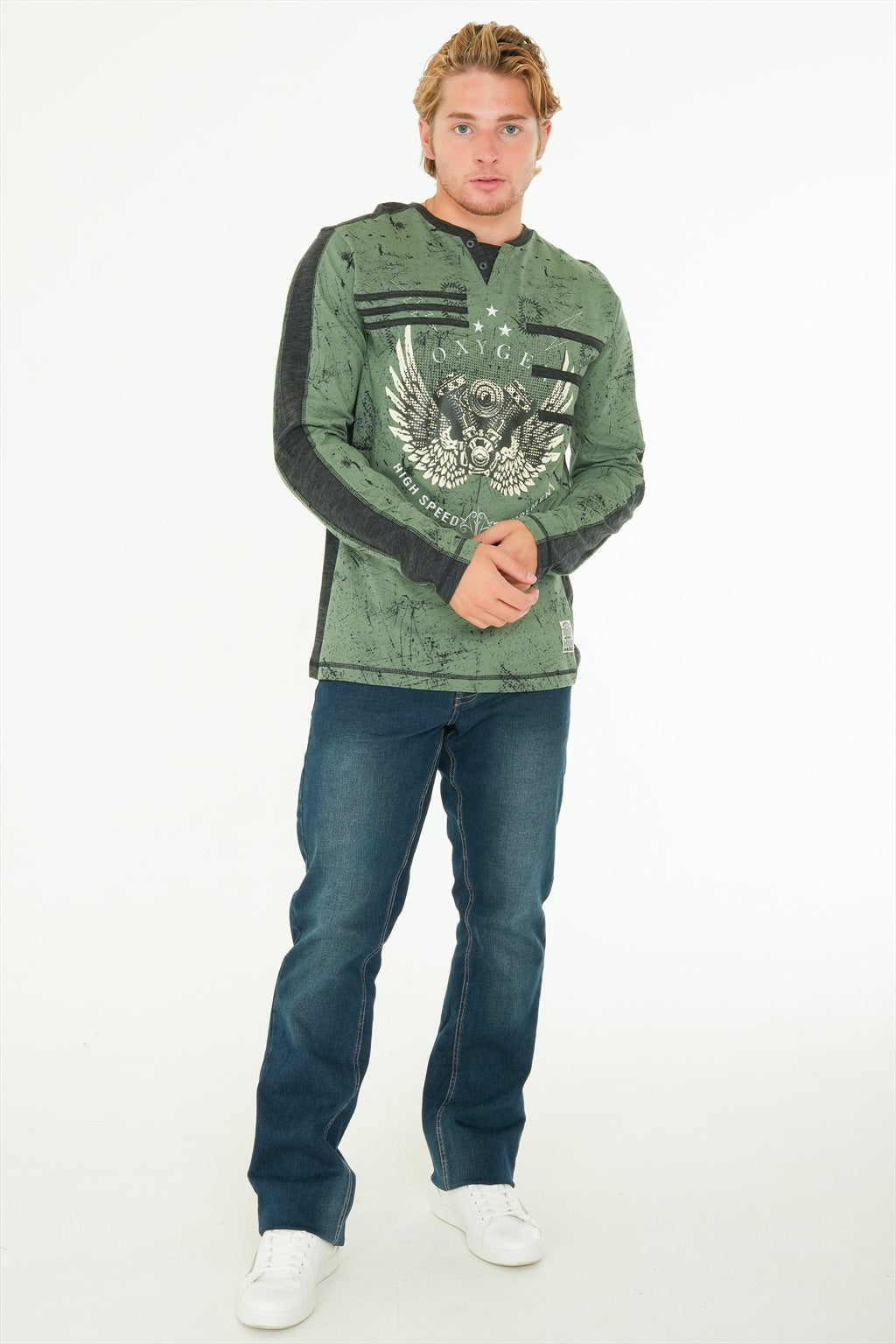 Véritable élément essentiel de votre garde-robe, ce henley à manches longues et col rond avec un imprimé all-over sera un élément essentiel de votre look décontracté.