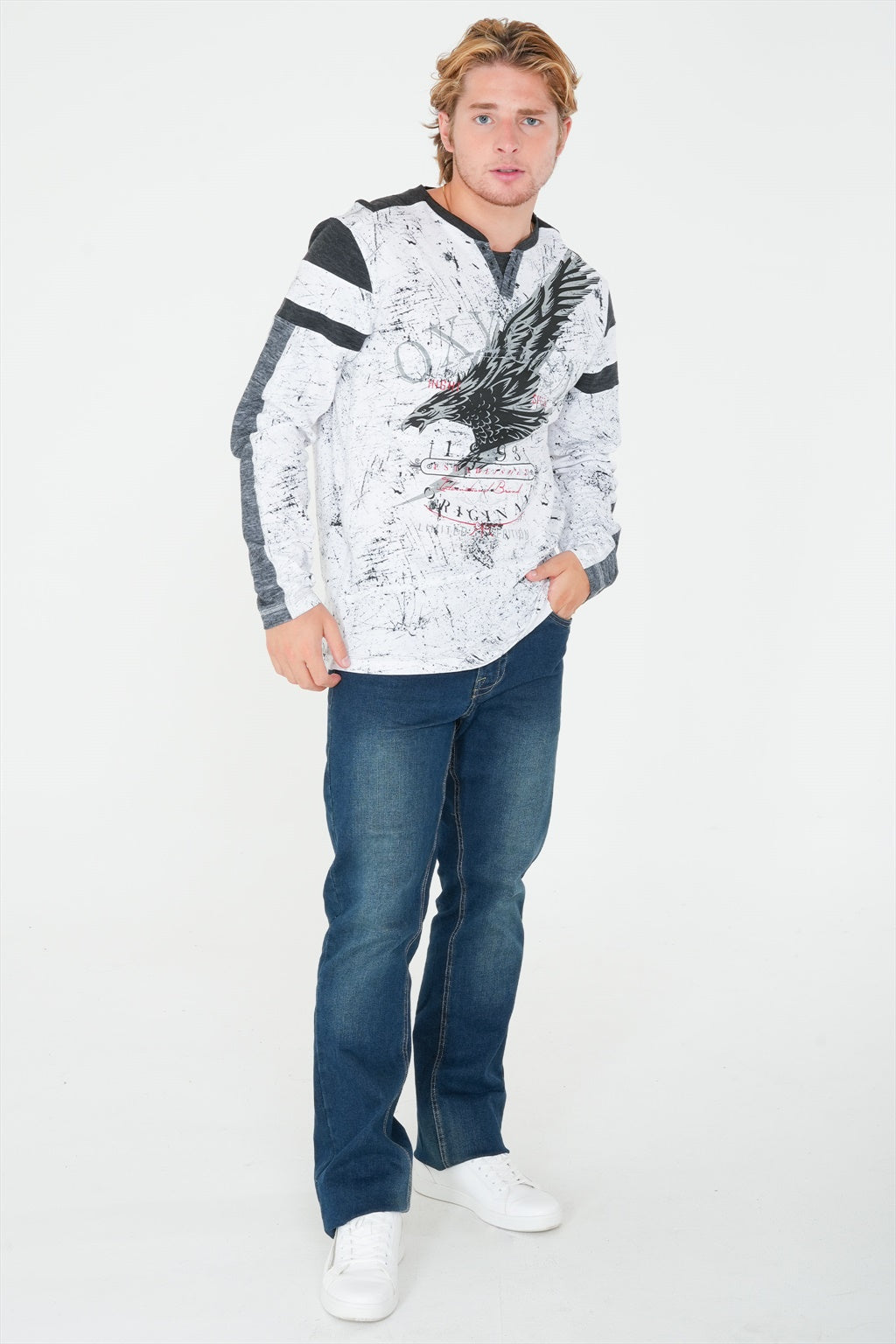 Véritable élément essentiel de votre garde-robe, ce henley à manches longues et col rond avec un imprimé all-over sera un élément essentiel de votre look décontracté.