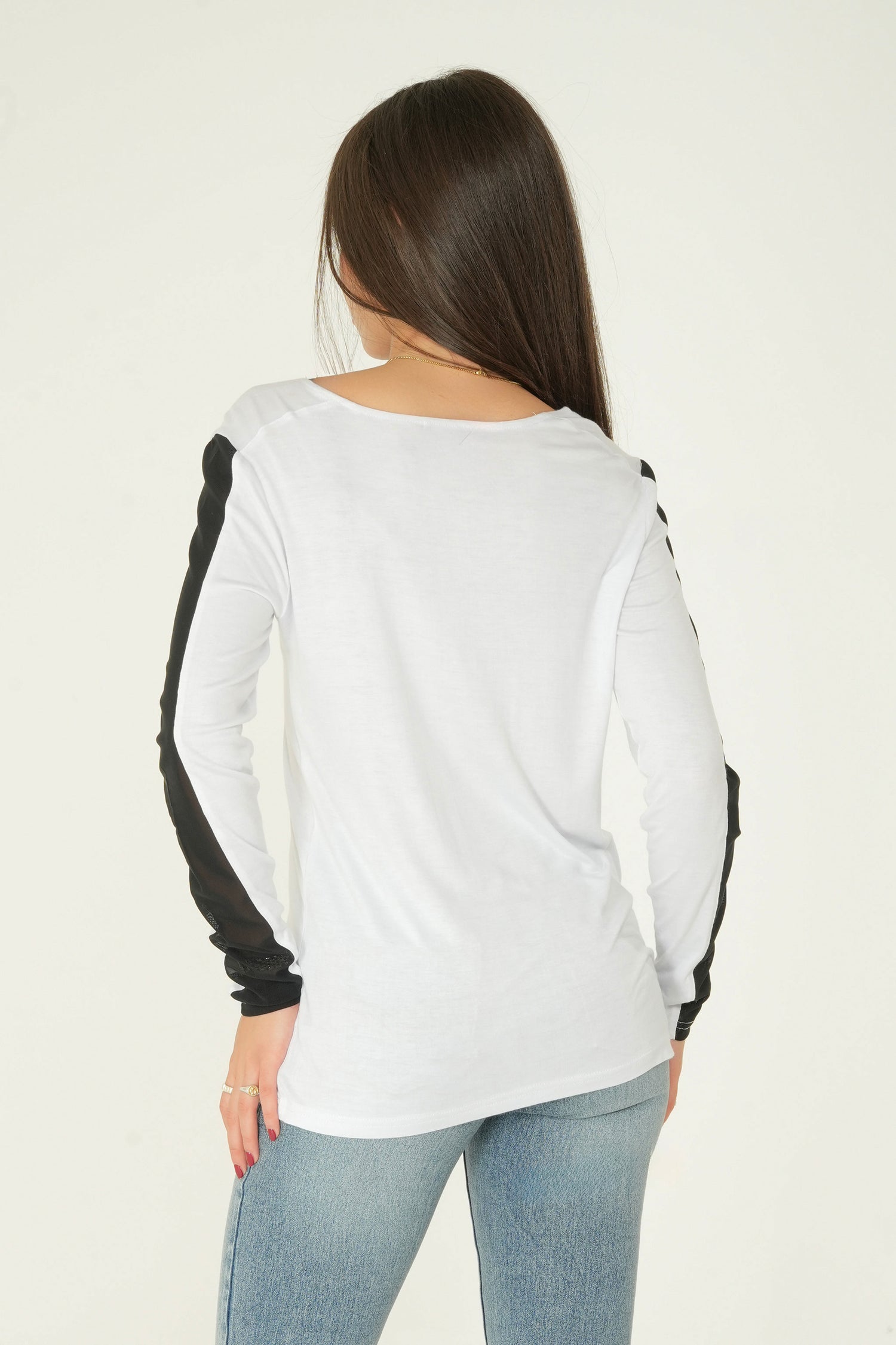 Elle présente un détail de filet en triangle inversé sur la poitrine.