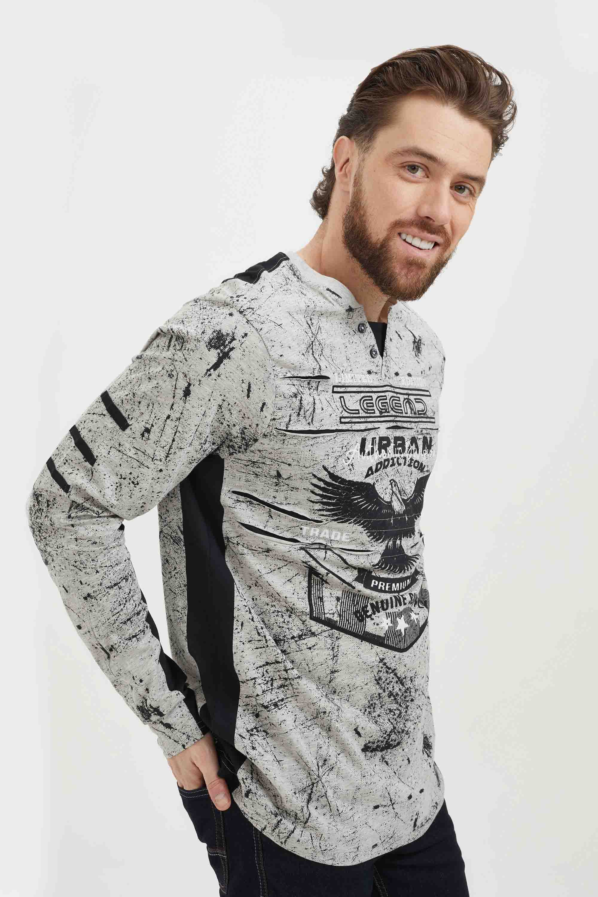 Ce haut est doté de boutons au niveau du col et d'un imprimé Urban Addiction spécifique à la marque.