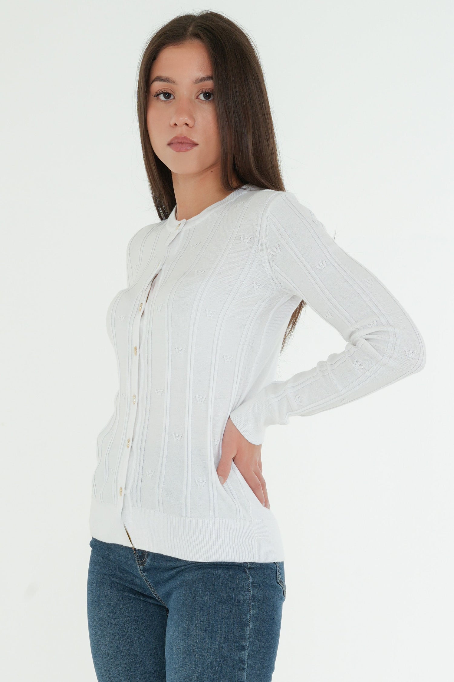 This classic-fit cardigan will add a feminine touch to your outfit all while elevating your everyday style. A perfect season layer.