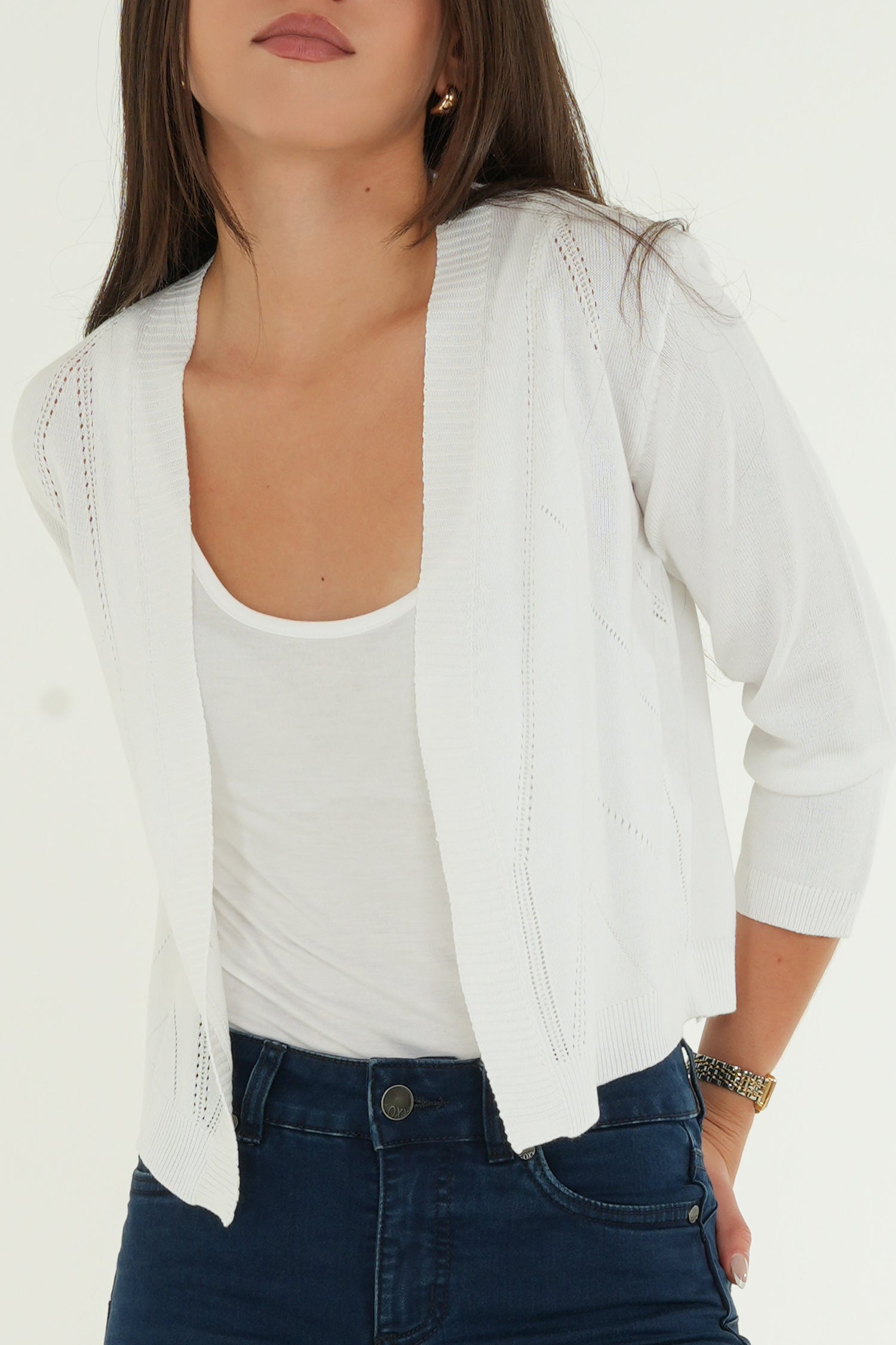 This cute cropped bolero is perfect to slip on over your favourite tank top or sleeveless dress. An elegant way to add some dimension to your style or simply to keep you warm when needed.