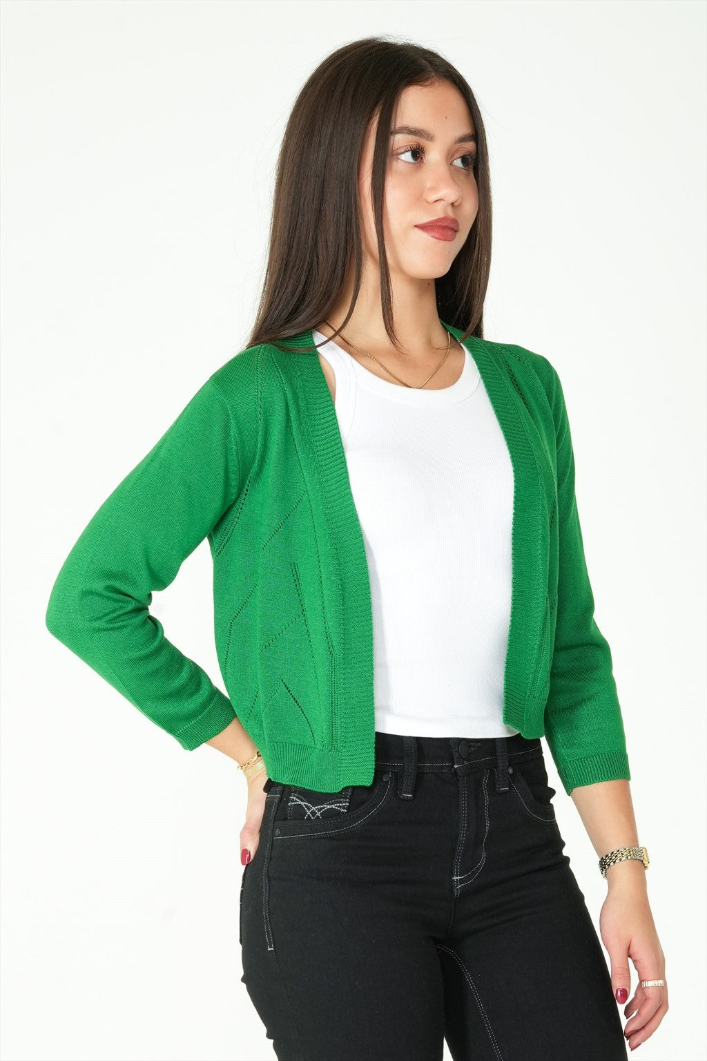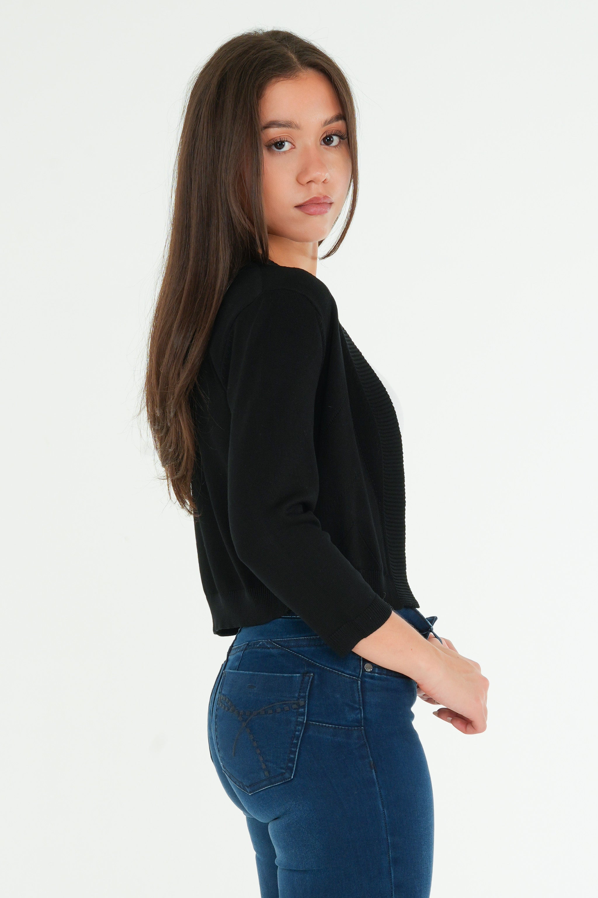 This cute cropped bolero is perfect to slip on over your favourite tank top or sleeveless dress. An elegant way to add some dimension to your style or simply to keep you warm when needed.